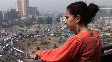 Aux jeunes, surtout. La place fondamentale de la jeunesse égyptienne dans la révolution est bien connue et a déjà été filmée. Ici, il s’agit d’une jeune fille, d’une vingtaine d’années, engagée dans la révolution de façon très personnelle, que certains adultes pourraient juger naïve ou pleine d’illusions, mais dont la fougue et la sincérité sont évidentes. La séquence introductive nous la montre longuement, distribuant un journal gratuit, la nuit. Surtout, elle dialogue avec ces passants anonymes, des adultes. Une femme en particulier, qui porte le voile et qui tient un discours qui se veut réaliste (il faut bien reprendre le travail et cesser les manifestations) que la jeune fille n’est pas loin de juger défaitiste. La poursuite de la révolution est aussi au cœur des discussions qu’Hana suscite avec les chauffeurs des taxis qu’elle emprunte pour se déplacer, et celles qui se développent de façon quasi ininterrompue avec ses amis. Eux, ils recherchent de nouvelles formes d’action, des moyens originaux pour populariser leurs idées et ils s’engagent dans une démarche résolument créative (des dessins et slogans bombés au pochoir sur les murs). Y a-t-il une fracture entre les jeunes et le reste de la population égyptienne ? Le film ne va pas explicitement dans ce sens, mais la question ne peut pas ne pas se poser.