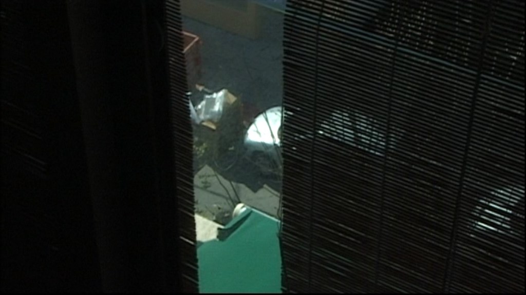 « Je regarde par la fenêtre, et je me replis sur moi. » Cette fenêtre nous la verrons pendant presque tout le film. De longs plans fixes, sur les immeubles en face, à travers le cadre de la fenêtre et les stores qui sont le plus souvent baisés. Akerman a renoncé à utiliser les travellings qu’elle mêlait aux plans fixes dans ses précédents documentaires. Ici la caméra reste sur son pied, sauf pour une très courte séquence, plusieurs plans brefs où la caméra essaie de cadrer en bougeant un avion dans le ciel noir de la nuit. Quand elle s’immobilise, c’est pour panoter vers le bas et retrouver le cadre habituel de l’immeuble d’en face au travers du cadre de la fenêtre.