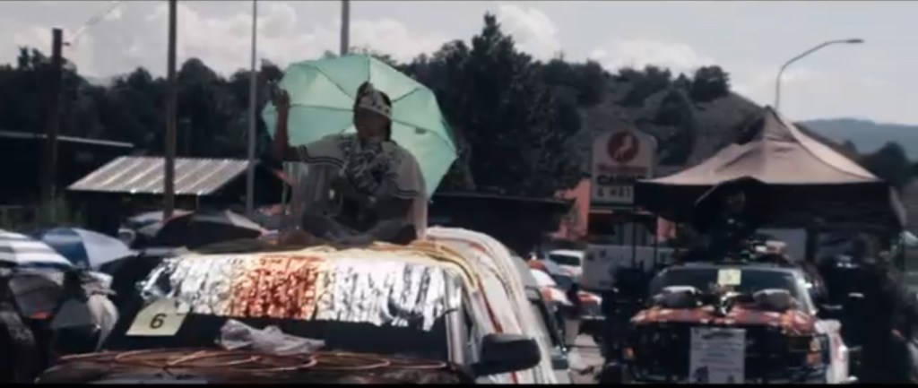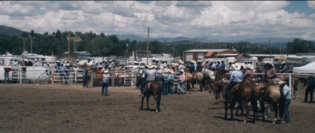 Au-delà de la situation de Léon et de sa famille, le film est une plongée au cœur de cette communauté Apache. Le rodéo, la chasse, la course de chevaux, le carnaval, la fête locale, des moments de vie traditionnels où la politique semble mise de côté. Pourtant, le discours de la « Miss Jicarillas » est un vibrant appel à la solidarité et à la mobilisation. Et ce n’est pas un hasard bien sûr si le film commence et finit par des images d’archives résumant parfaitement la situation des amérindiens. Au début, des enfants en blouse d’écoliers chantent une comptine en anglais. A la fin, une manifestation tourne à l’affrontement violent avec la police. Face à l’incertitude de l’avenir, le recours aux valeurs de la culture ancestrale n’est-il pas la seule possibilité de survie ?