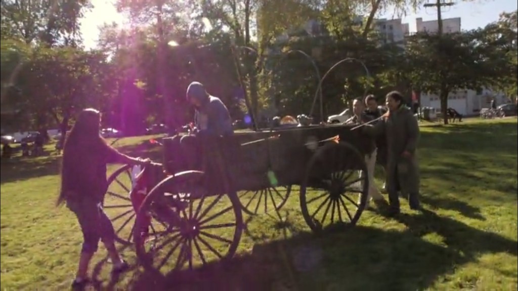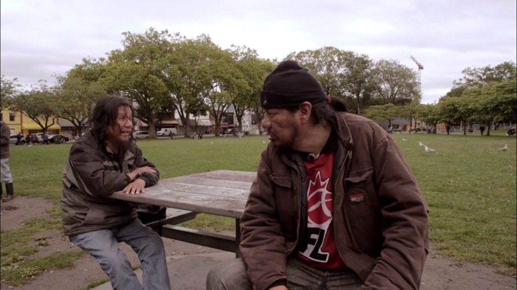 En plein centre de Vancouver, Canada, un ancien cimetière indien, devenu un parc. L’océan n’est pas loin. Les oiseaux marins sont omniprésents dans l’image. Comme s’ils observaient la vie du parc. Mais la caméra ne s’attarde pas sur eux. Il y a d’autres présences dans le parc, d’autres habitants avec qui le cinéaste va tisser des liens, s’entretenir avec eux. Les filmer.