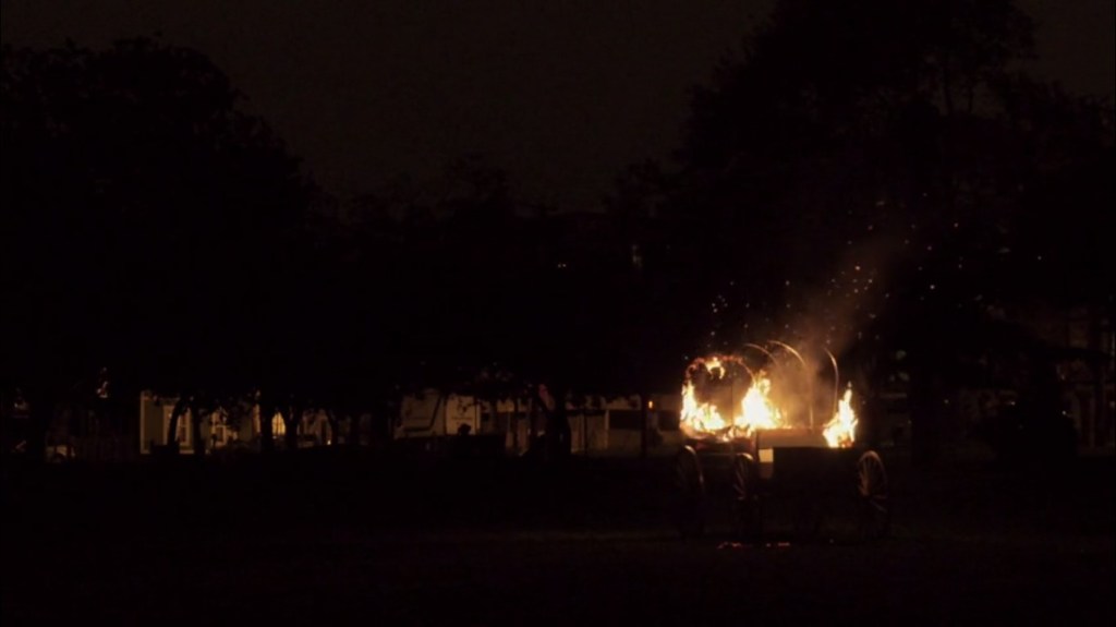 Sous son apparence de quiétude ensoleillée et de fausse sérénité de beaucoup de plans, le film contient une forte charge émotive. Une charge qui peut bien exploser la nuit, au son des tambours. On comprend alors l’image du chariot en feu dans l’incipit. Les restes d’une culture qui partent en fumée. Mais qui créent une bien belle lumière.