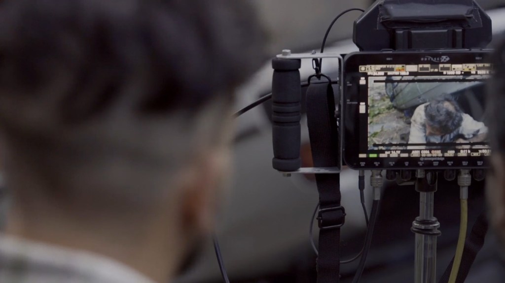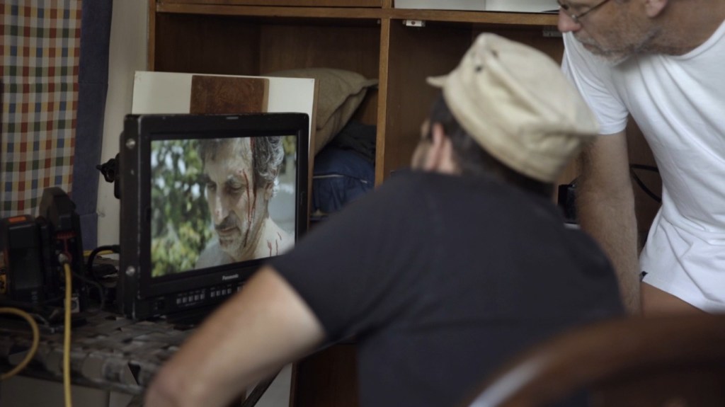 Mais n’y a-t-il pas dans le projet lui-même une dimension qui déborde largement cette visée documentaire. Car si le film que tourne le fils sur son père est une fiction, le film fait sur ce film-là prend lui-même une dimension fictionnelle. El father plays himself, film de Mo Scarpelli, est en effet tourné (et monté) comme s’il était réalisé par le même cinéaste que celui qui réalise le film sur son père. Une sorte d’autofiction en somme. Et du coup la réalisatrice effective de El father plays himself s’effaçant totalement, on peut dire que le fils est en train de réaliser deux films d’un seul coup.