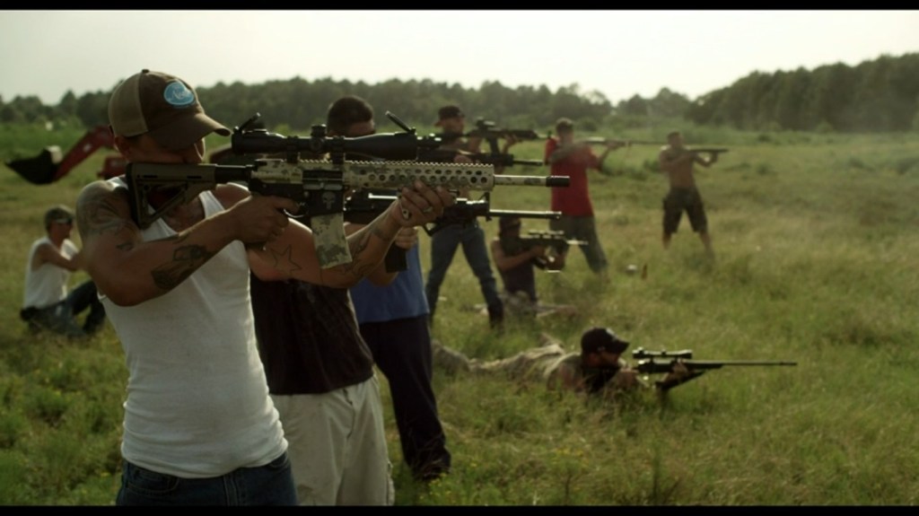 Car il y a un autre côté de cette marginalité-là, un groupe d’anciens soldats, revenus du front encore jeunes, armés jusqu’aux dents et qui s’entrainent systématiquement en vue de faire face à la guerre intérieure qui ne manquera pas d’exploser. Leur tête de turc, c’est Obama. Simplement parce que c’est un « nègre ».