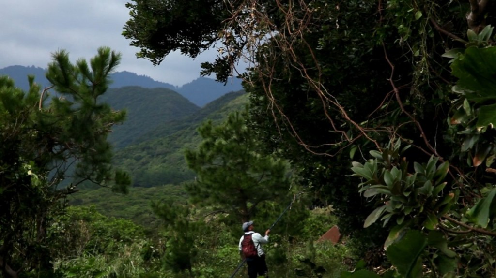 Une île japonaise, Yakushima. Une île lointaine donc, façon de nous écarter de nos références de pensée habituelles, le rationalisme cartésien tout particulièrement. Une île peu habitée – on ne rencontrera que deux hommes dans tout le film. Une île montagneuse, couverte d’une forêt épaisse, qu’on pourrait dire sauvage, ou naturelle, parce que les traces humaines y sont peu visibles. Le lieu idéal pour poser la question du rapport de l’homme et de la nature.
