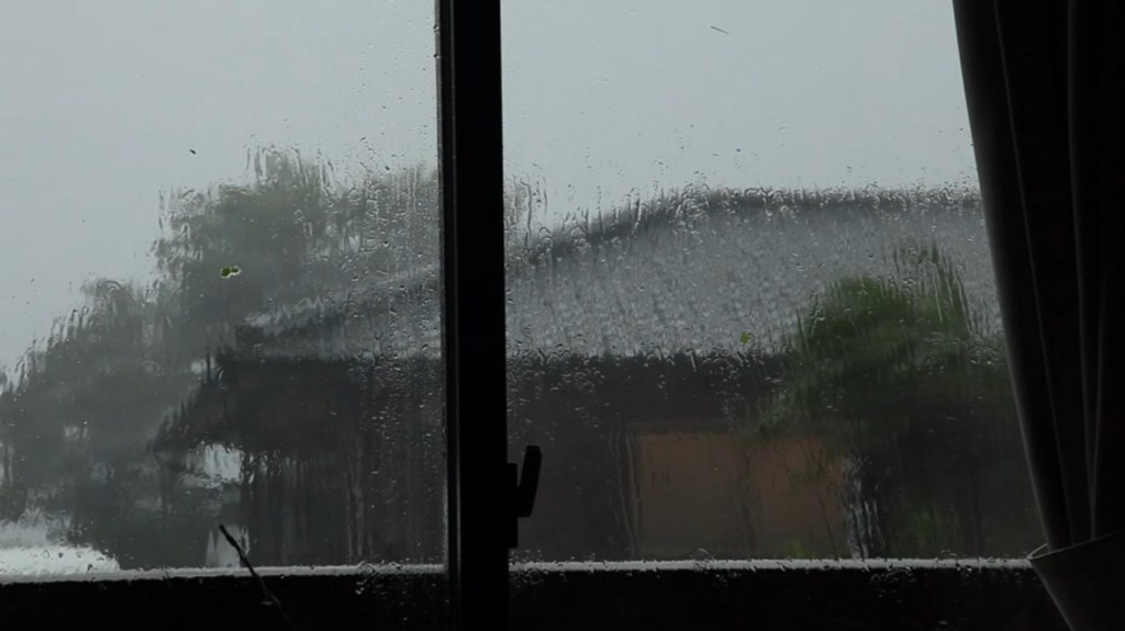 Et pourtant, la nature peut se déchaîner. Dès le début du film, nous suivons sur un écran l’avancée du typhon annoncé. Un typhon ? Cela ne représente-t-il pas, une force destructrice, hostile aux hommes et à leurs œuvres ? Mais l’homme qui vit là n’a aucune inquiétude. Nous voyons le vent et la pluie faire rage à travers la vitre de la pièce où il repose le plus calmement du monde. Et une fois le typhon passé, il reprendra, comme avant, son activité de chasse aux papillons. Comme lui l’escargots, l’araignée et les fourmis, que nous voyons plusieurs fois en gros plans dans le film, peuvent reprendre le cours de leur vie. Seul l’homme pourrait la perturber. Ce qu’ici il se garde bien de faire.