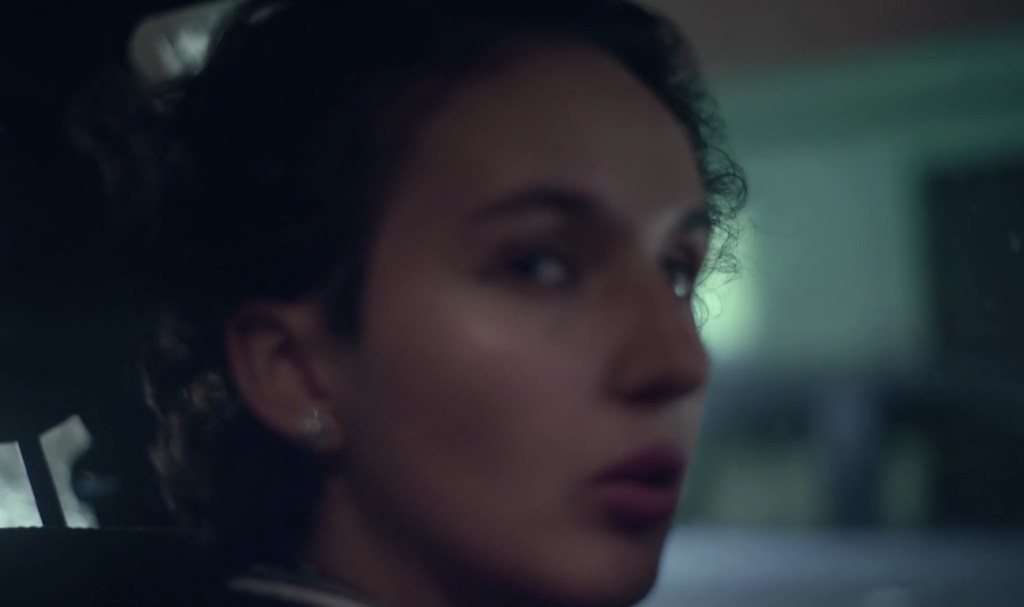 Une jeune femme seule au volent de sa voiture. Cadrée en plan rapproché, de profil. On ne voit que son visage. Derrière elle l’image est flou. On devine tout juste d’autre véhicule qu’elle croise ou qui la double. Et les lumières de la ville, la nuit.