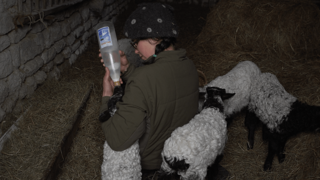 Une jeune femme exploite donc seule (ou presque, puisqu’elle est quand même aisée – par une amie ? – pour pratiquer le labour avec un cheval) une petite ferme quelque part dans le centre de la France. Elle y pratique du maraichage – elle vend ses salades sur le marché – et élève quelques brebis. Cela lui suffit-il pour vivre ? Et surtout pour élever ses trois enfants, ce qu’elle fait effectivement seule puisqu’il n’est jamais question de père.