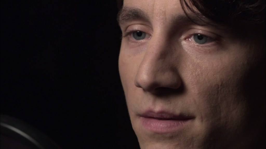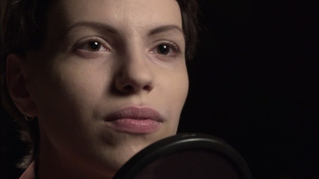 Car nous sommes dans un film et non dans le studio d’enregistrement (ou sur une scène de théâtre). Et donc cette présence du poète et de l’écrivaine – la présence de leur séparation – qui s’incarne dans la proximité entre l’actrice et l’acteur, est due à la qualité du filmage – à la perfection du filmage. Ces gros plans – des très gros plan même parfois – sur les visages, leur voix qui est comme matérialisée dans l’image et ces moments de silence où la concentration est visible, palpable.