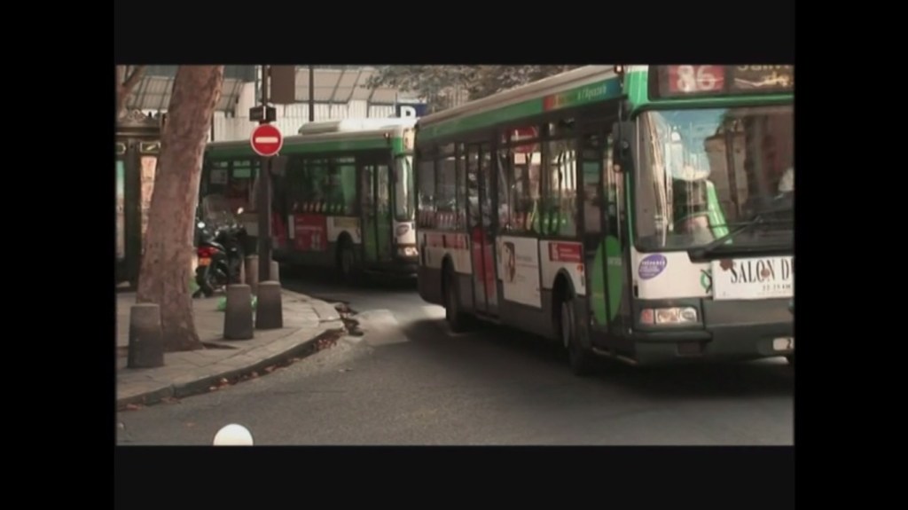 Pourtant, le film a bien une spécificité par rapport au texte écrit. La différence entre les deux tient dans le cadrage des images. Car Pérec ne dit pas s’il voit le bas 86 en gros plan, il joue simplement avec son degré de remplissement ou de vide. Dans la première séquence du film, une sorte de présentation des bus parisien passant place Saint Sulpice, Il dit seulement que le bus 86 va à Saint Germain des prés. Regardant le film nous pouvons le savoir – si le son ne le dit pas – si nous avons le temps d’apercevoir cette annonce inscrite sur le fronton du bus. Mais quand dans l’image le bus 86 tourne devant nous, si près de nous que nous pourrions très bien avoir le même type de réaction que les spectateurs du train entrant en gare de La Ciotat (non pas fuir bien sûr, mais avoir quand même un petit sursaut de recul…), c’est bien la « magie » première du cinéma qui est à l’œuvre.