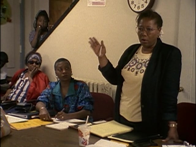 Face à toutes ses difficultés, le quartier ne reste pas passif. Bien des habitants que filme Wiseman ne sont nullement résignés et dépensent beaucoup d’énergie pour essayer d’améliorer le sort de leur communauté. C’est le cas d’Hellen Finner, responsable du conseil des habitants, filmée alors qu’elle essaie de trouver un appartement pour une femme qui se retrouve à la rue avec un bébé. Pour elle, il est inacceptable qu’il y ait des gens sans logis alors que des appartements sont inoccupés dans le quartier. Le problème n’e semble pourtant pas facile à résoudre. Nous retrouverons Hellen plus loin dans le film, toujours au téléphone, se débattant pour trouver des solutions aux difficultés des habitants de ce quartier dont elle est elle-même issue. Un bel exemple de solidarité.