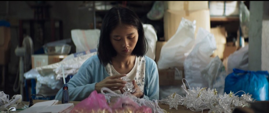 En dehors de cette vision du travail dans les ateliers, le film nous amène aussi dans les familles chinoises. On discute beaucoup au cours des repas. De l’avenir, surtout celui des usines. De l’école pour les plus petits. Des amours des adolescents. Le père fait souvent la cuisine et la vaisselle. Une vision moderne de la vie familiale.