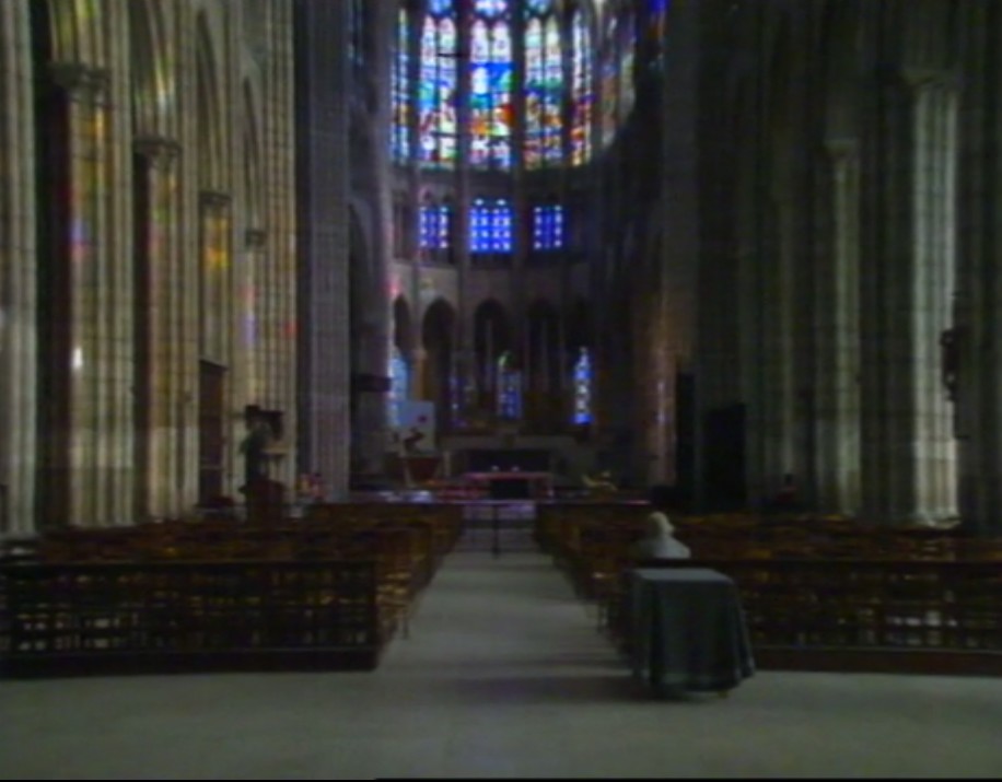 Dans le film l’écrivain écrit très peu. Par contre, il se promène beaucoup. Dans la ville. Dans le centre de la ville. Dans les lieux de la ville qui sont plutôt touristiques, qui sont ce que l’on visite si l’on va à Saint Denis. La basilique.