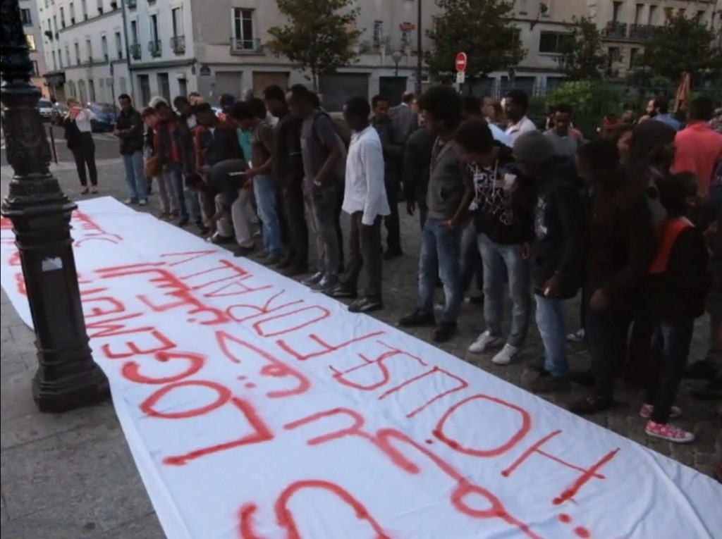 Stalingrad, Gare du nord, La Chapelle, l’église Saint Bernard, la halle Pajol, le bois Dormoy, Château Landon, le jardin d’Éole, des lieux qui riment avec réfugiés, des quartiers de Paris où ils se sont installés – où ils ont tenté de s’installer – dans les rues, sur les trottoirs avec des matelas pour la nuit, dans des squares sous des tentes. Des espaces urbains où, n’ayant nulle part où aller, ces Africains (Soudanais ou Érythréens) fuyant la guerre dans leurs pays, se retrouvent entre compatriotes, avec leurs compagnons d’infortune. La ville alors prend un autre visage, complétement inédit, en rupture avec les normes urbanistiques et architecturales. Nous sommes en 2015, pendant l’été. L’histoire retiendra sans doute l’appellation officielle -officialisée par les médias – de crise des réfugiés.