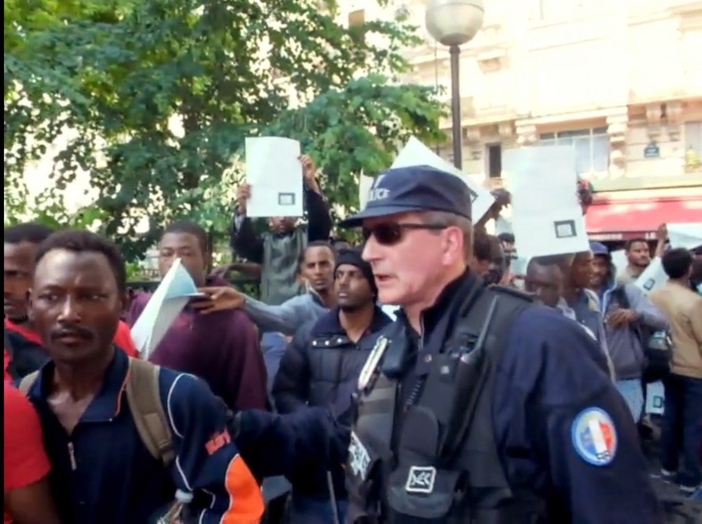 Les représentants de la mairie de paris sont venus se rendre compte de la situation0Ils écoutent les revendications des réfugiés, la demande de conditions d’accueil satisfaisantes, au niveau de l’hébergement et de la nourriture – et la possibilité de déposer une demande d’asile. Quelles réponses sont apportées ? On a l’impression que ce qui compte avant tout pour les autorités, c’est de pouvoir évacuer les rues, de disperser les réfugiés dans des foyers et le plus possible en banlieue. Des bus sont affrétés pour cela. Les espaces des anciens campements sont nettoyés à grande eau. Mais les problèmes des réfugiés n’en seront pas résolus pour autant.