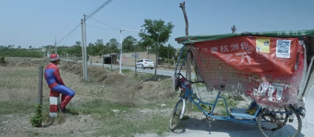 Mais cette piste est rapidement abandonnée. Wu part sur les routes avec son vélo aménagé en une sorte de remorque où il peut dormir. Il affiche là où il peut des photos de son fils disparu. Puis il se rend à la sortie des écoles, interroge les élèves. Il a revêtu une combinaison de Spiderman. Il ne passe pas inaperçu.