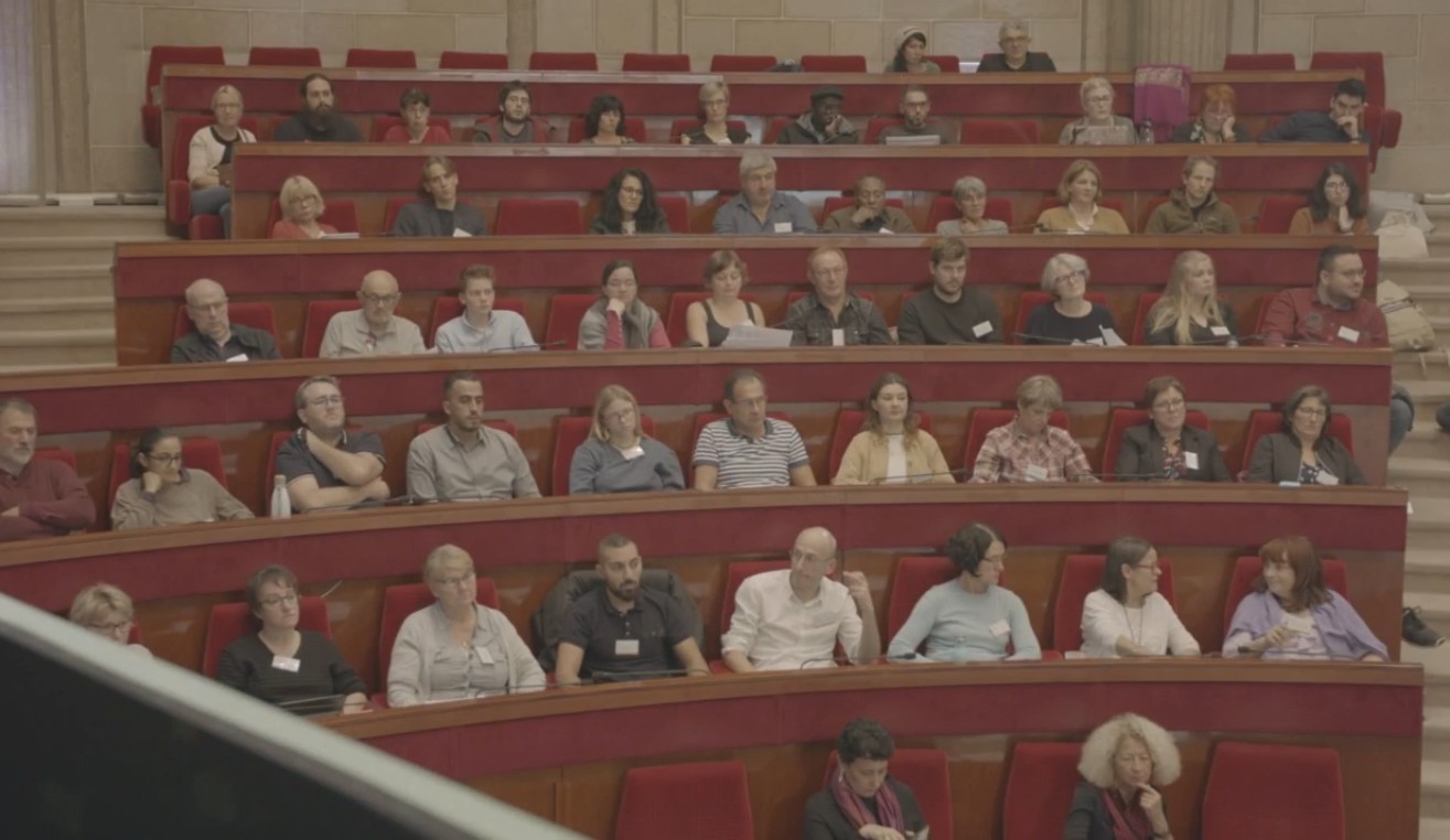 Dans quelques années – ou quelques décennies – le film de Naruna Kaplan de Macedo pourra sans doute être considéré comme un document historique fiable à propos de cette Convention Citoyenne pour le Climat. Certes le film ne prétend pas être exhaustif et le choix des personnages mis en évidence, plus présents à l’image que d’autres – une jeune fille de 17 ans et une femme plus âgée et souvent contestataire ; ou un homme qui est souvent porte-parole de son groupe et qui acquiert un statut de leader – ne sont sans doute pas le fait du hasard. Mais le montage précis et rigoureux du film lui donne non seulement un rythme soutenu évitant tout temps-morts, mais aussi une portée qui dépasse la simple anecdote pour se situer au niveau des grands événements historiques.