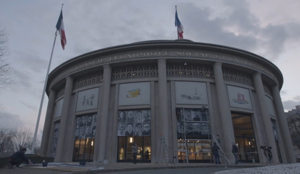 Le film n’échappe pas pour autant à un petit air de reportage. Mais un reportage qui se démarque nettement de ceux où la caméra se contente d’être un simple instrument d’enregistrement des faits. Ici, si l’on peut effectivement être en prise directe avec les faits, le travail cinématographique vise aussi – et peut-être surtout – à rendre compte d’une ambiance, d’une atmosphère, dans cette sorte de huis-clos qu’est la Convention puisque le film ne sort du Palais d’Iéna où elle se déroule qu’une seule fois – pour une courte séquence sur le parvis du palais filmant une manifestation de gilets jaunes (pour le contexte politique de l’époque). Les plans des séances en vision, imposées par le confinement, renforcent d’ailleurs cette sensation d’enfermement que l’on peut avoir dans les séances plénières ou de petits groupes.