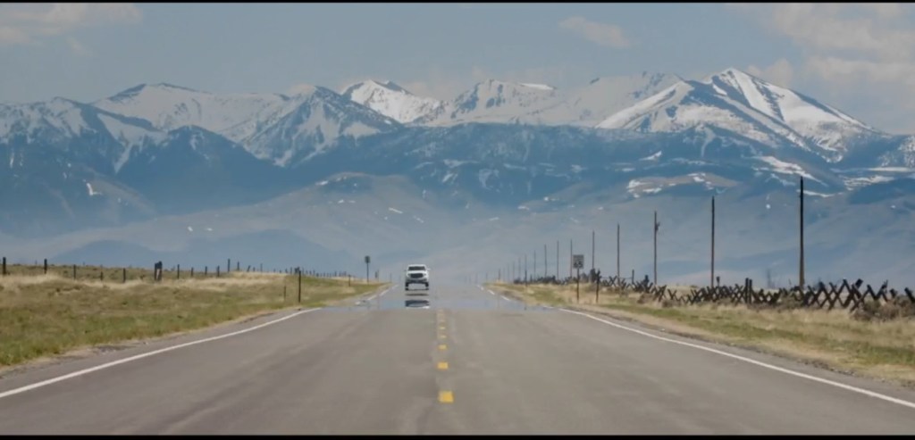 A plusieurs moments dans le film, nous le voyons se déplacer, en voiture ou à pied. Il fait aussi une partie de pêche, avec un ami. Il écrit le matin et pêche l’après-midi dit-il. Puis il change de résidence. Un voyage à travers une bonne partie des Etats-Unis. Une série de paysages. Presque des cartes postales. Mais toujours impressionnants.
