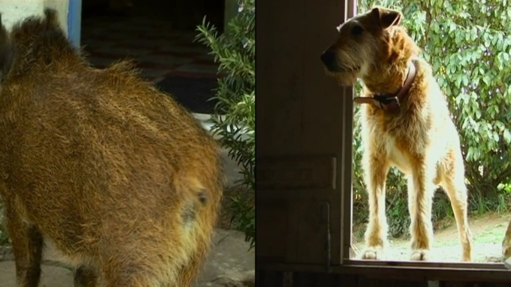 Pourtant le cœur du film est constitué par une histoire simple, qui pourrait presque être banale, ou qui finit par le devenir. Elle se résume en quelques faits. Une femme, Madelaine, recueille chez elle, dans la campagne normande, un petit marcassin nouveau-né, dont la mère a été tuée par les chasseurs. Elle l’élève au biberon : attendrissant. Mais la loi interdit de garder chez soi des animaux sauvages. Pour les chasseurs, le sanglier est un animal nuisible. Il faut l’exterminer. Pourtant Madeleine s’attache à Toto, qui la suit partout. Jusqu‘au jour où le garde-chasse viendra pour l’enlever à sa mère adoptive. Révoltant.