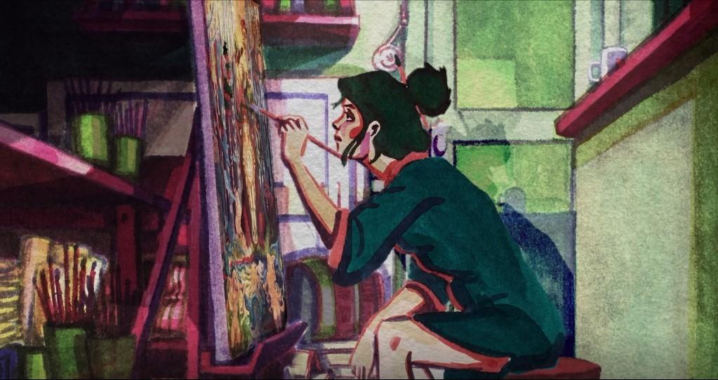 La couleur pour moi, elle devait être narrative. L’image peinte devait être autant narrative que le cadrage, et que la narration fictionnelle. La couleur sert à montrer l’émotion intérieur du personnage et son rapport au monde. Quand elle est dans la ville, il y a un rapport de plein et de trop plain. Jusqu’à un certain moment où les couleurs deviennent très expressionnistes. De l’autre côté, dans l’hôpital, c’est vraiment le vide. Elle a tout donné, elle s’est vidée sur le papier. Il y a l’idée de la page blanche, puisque ça parle aussi de la démarche artistique. C’est-à-dire comment on regarde le monde. Il faut se remplir du monde pour pouvoir remplir une feuille de papier. La contemplation du monde s’étant arrêtée, on est juste spectateur, est aussi nécessaire que les temps où on est actif et qu’on donne à peindre. Il y a aussi tout ce rapport au temps. Cette nécessité du temps qui est en train de disparaître dans nos sociétés où il faut toujours être actif, toujours être en train de faire quelque chose. Le film est aussi pour moi une ode à la contemplation. S’arrêter et juste un regard, être juste là dans le présent est aussi important qu’être actif. On ne peut rien donner de bon si on ne s’imprègne pas du monde dans lequel on vit. Si on ne prend pas un peu de temps pour l’empathie vis-à-vis d’autrui, si on ne prend pas un peu de temps pour essayer de comprendre les choses qui nous entourent et la complexité des gens qui sont à côté de nous. Si on va trop vite, on nie la complexité des choses et du coup ça empêche d’être juste avec les autres. On juge trop vite. On ne prend pas le temps de comprendre vraiment un monde compliqué. Un individu c’est un être compliqué. On ne peut pas le résumer à une couleur de peau, à un pays, à des choses aussi simples que ça.