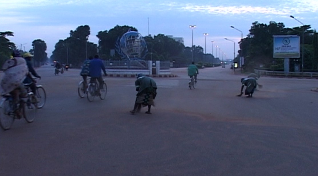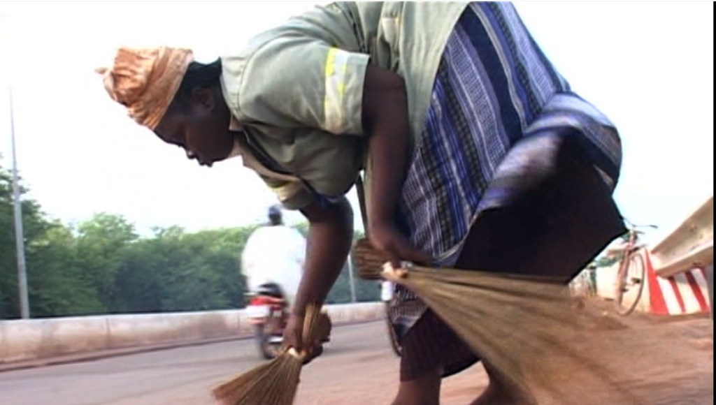 Un travail qui n’a pas de fin. Un travail de Sisyphe. Toujours à recommencer. Jour et nuit elles balaient les rues de Ouagadougou, au milieu de la circulation. Jour et nuit elles soulèvent la poussière avec leur balaie de paille. Elles ramassent le sable dans de grands sacs. Courbées vers le sol, les femmes de la « brigade verte » offrent un peu de propreté aux rues et aux trottoirs de la ville qui en ont bien besoin. Un travail mal payé, méprisé par les hommes ; un travail dangereux et fatiguant ; mais un travail qu’elles ont appris à aimer et qu’elles n’abandonneraient pour rien au monde. Un travail qui est une conquête, la conquête de leur indépendance et de leur dignité.