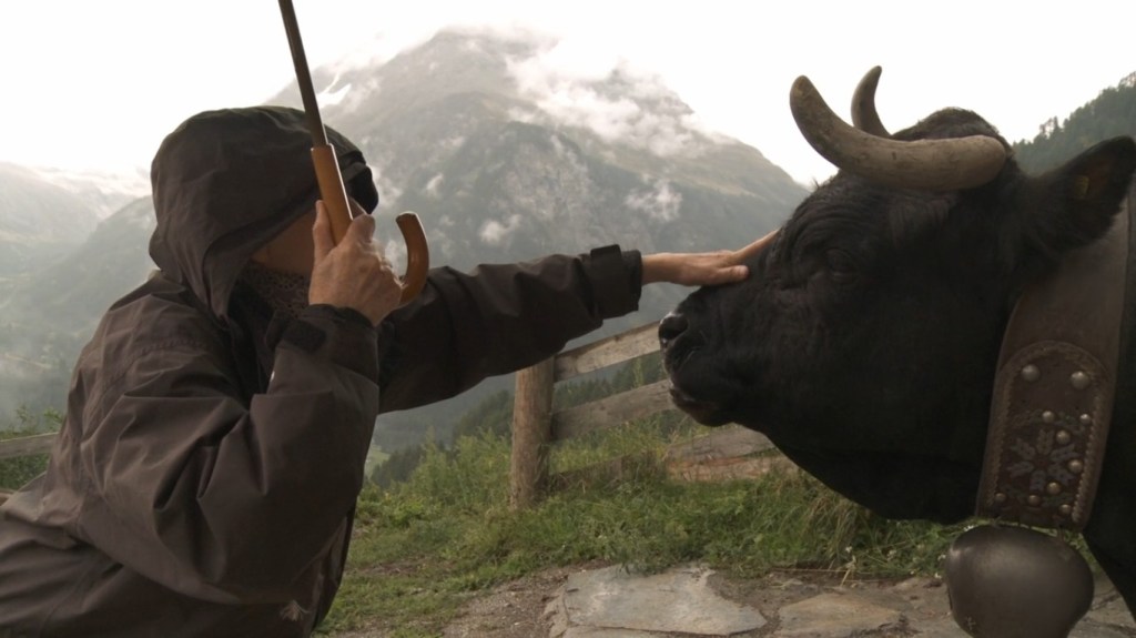 Dans les Alpes, les vaches peuvent devenir des animaux de compagnie, comme les chiens et les chats. Preuve ; Vedette. Un animal pas comme les autres. De toute façon, pour ses éleveuses, elle est unique. Comme chaque vache est unique. Unique comme toute personne. D’ailleurs, on n’est pas loin dans le filmde nous présenter Vedette comme une personne. Le film n’aurait-il pas alors dû s’intituler « La vache est une personne », en paraphrasant un célèbre film consacré au bébé. Mais entre la vache et le bébé humain, il reste bien encore quelques différences.