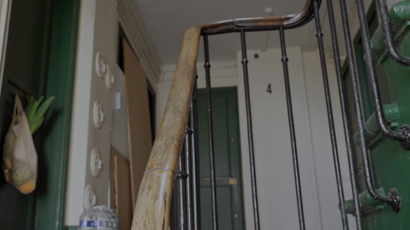 Le cinéaste, en voix off, intervient par moment au cours de la montée. Pour évoquer la vie et l’histoire de l’immeuble, un immeuble parisien comme il y en a dans tous les quartiers. Il a connu la rafle du veld ’hiv, mai 68. Une SDF s’était un jour installé sur un palier et a vécu là quelques temps. Si on était chez Pérec – peut-on éviter de penser à La Vie mode d’emploi, on entrerait dans les appartements pour faire connaissance avec les habitants, évoquer leur présent et leur passé. Mais dans le film, tous restent hors-champ. La caméra peut bien faire mine de s’attarder devant les portes sur les paliers, elles restent systématiquement closes. Elles laissent juste passer quelques bruits, des fragments de musique, des coups de marteau. C’est quand même toute une ambiance que nous appréhendons ainsi.