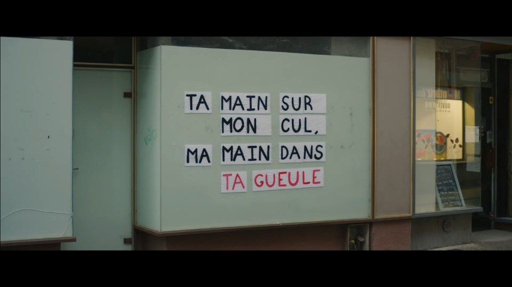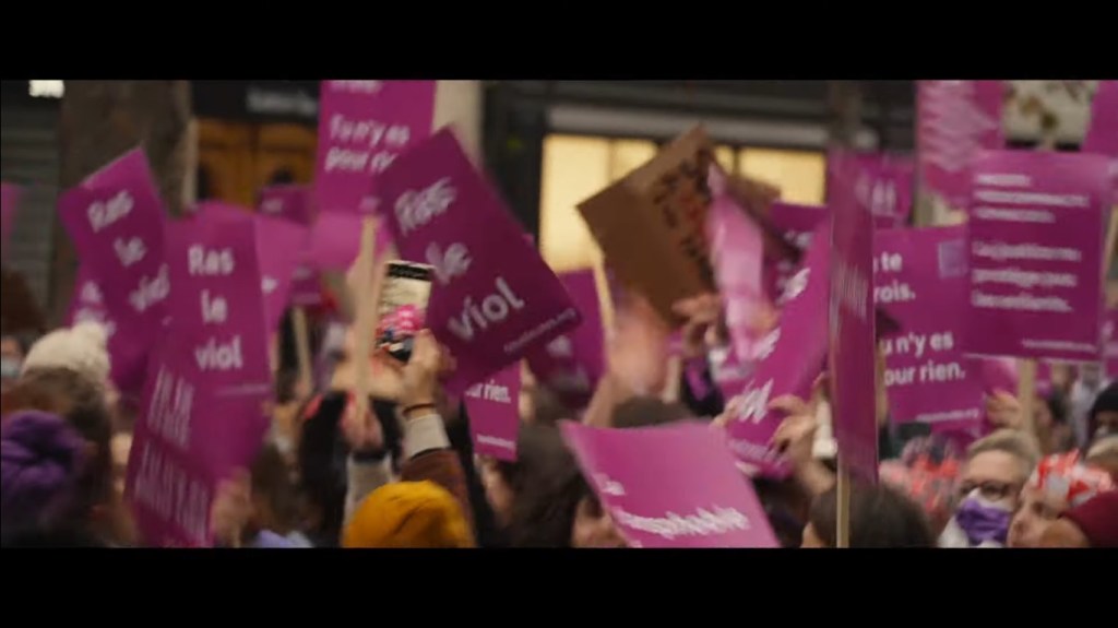 Lorsqu’elles ne discutent pas, elles manifestent. Comme dans beaucoup de films depuis les mouvements des Gilets Jaunes ou #MeToo, la caméra nous plonge au cœur des cortèges joyeux, colorés, bruissant de chansons et de musique. Des manifestations non violentes où pancartes et slogans rivalisent d’originalité. Décidément, les luttes féministes sont vraiment inventives pour faire parler d’elles.