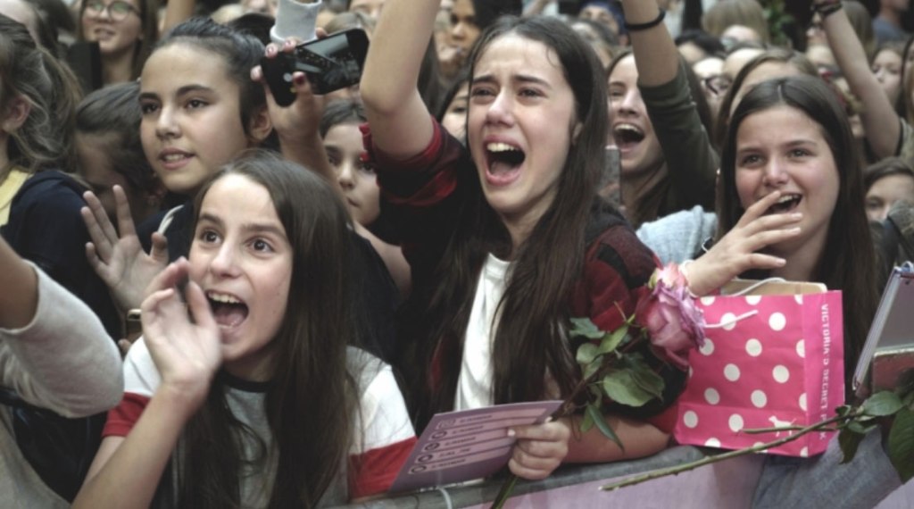 Girl gang est un film tout simple, évident. Il suffit d’être accepté auprès de Léo et de filmer sa vie d’adolescente d’aujourd’hui accro aux réseaux sociaux. Par exemple, réaliser ces plans impressionnants, à chaque prestation de Léo dans des centres commerciaux. La foule hurlante des gamines agrippées aux grilles des magasins avant leur ouverture. On se croirait presque revenu aux temps des Beatles. C’est à qui sera la premières à toucher leur idole et à faire un selfie dans ses bras. Elle est si gentille, si souriante ! Elle sait si bien cacher sa fatigue, et l’ennui dû à la répétition. Mais il faut bien donner un peu de soi.