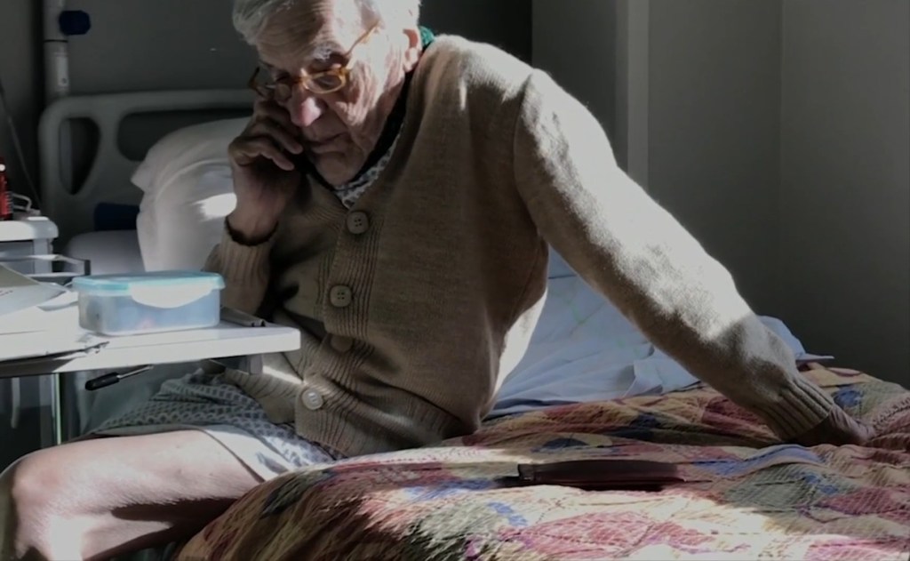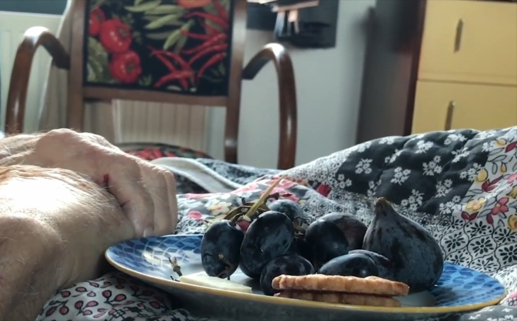 Dominique filme Didier, son compagnon aimé, sur son lit d’hôpital. Elle filme son visage, son corps étendu sur le lit, ses mains. Des mains qu’elle caresse doucement, tendrement.