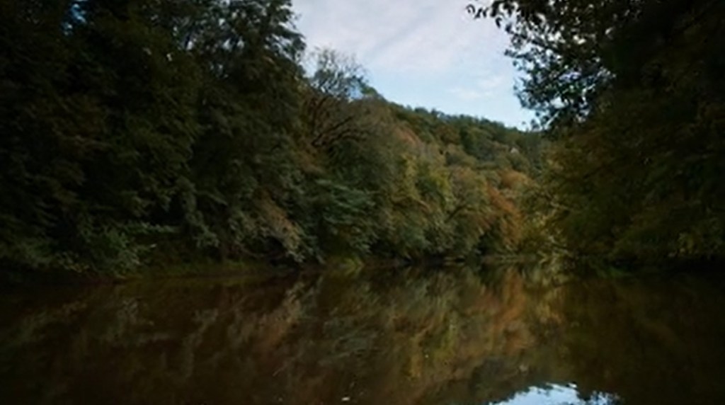 Alors, pourquoi ne pas partir à la recherche de ce comté « dont l’authenticité n’est pas avérée ». Faulkner en a dessiné la carte. Une incitation à se rendre sur le terrain. Et filmer. Filmer des paysages, une rivière en premier lieu, puis des bois et des collines, des plantations d’arbres fruitiers, et pourquoi pas, plus tard des constructions, des usines et même l’intérieur de maisons. On dirait presque une errance au hasard des routes ou des chemins. Presque un road movie alors ? Pas vraiment. On y fait très peu de rencontres, même si quelques femmes et quelques hommes acceptent de poser silencieusement devant la caméra. Il y a en fait beaucoup plus de fantômes, tous ces indiens qui étaient maîtres des lieux avant l’arrivée des colons. Un voyage en tout cas qui vaut bien un feu d’artifice. Un voyage qui devrait nous dépayser, mais qui s’achève dans un trop connu centre commercial.