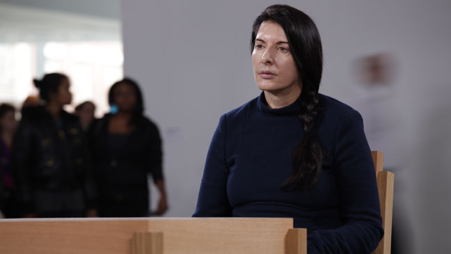 A 63 ans, Le Moma, le prestigieux musée de New York, lui consacre une rétrospective en lui confiant tout son sixième étage. Elle y installera cinq de ses plus célèbres performances « interprétées » par de jeunes artistes. Mais surtout, elle t créera une performance inédite, intitulée The artist is present, dans laquelle, pendant les trois mois que durera l’exposition, chaque jour aux heures d’ouverture du musée, elle restera assise sur une chaise placée au centre d’une vaste pièce, face à une autre chaise sur laquelle viendront s’assoir, pour un quart d’heure, les visiteurs qui le souhaiteront. Elle ne bougera pas et la personne qui sera en face d’elle ne devra pas non plus faire de mouvement. Tout se jouera dans l’échange de regard. C’est la préparation et la réalisation de cette exposition que montre le film. La reprise du titre de la performance indique clairement que celle-ci y occupera une place déterminante.