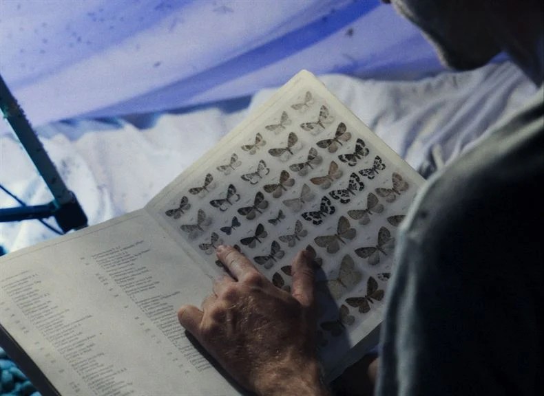 Le film se terne par une étrange chasse au papillon. Un drap blanc est étendu dans la forêt. Fortement éclairé, il attire les insectes de toutes sortes. Des objets d’étude à portée de main. Et l’observation d’un papillon rare, voire unique en Europe, est une grande satisfaction.
