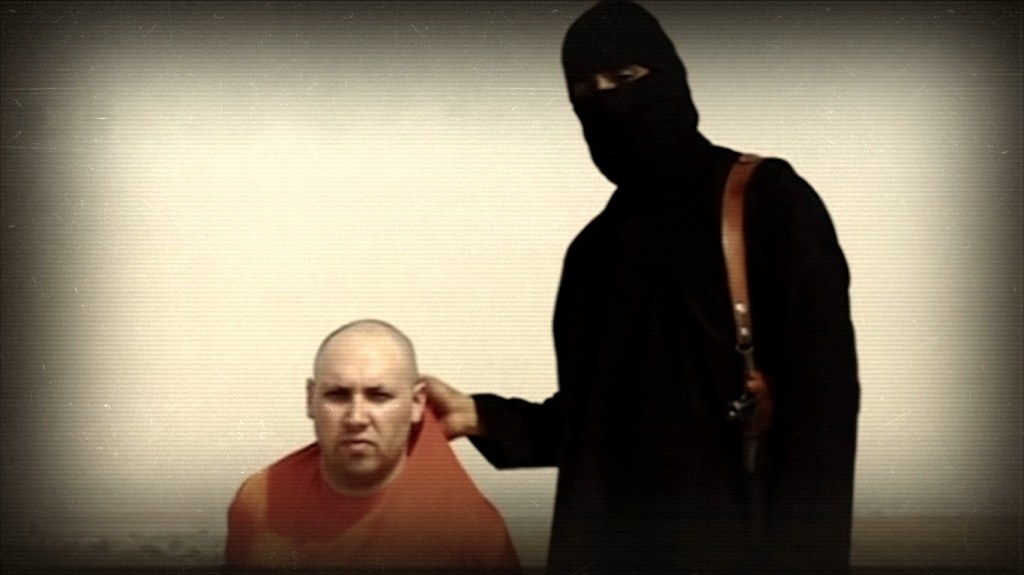 Marginedas sera le premier otage à être libéré, mais le film continue à évoquer le déroulement de cette prise d’otages qui devient un événement mondial, suivi par tous les médias. C’est en effet dans cette situation que Daech va monter cette mise en scène macabre en filmant et en diffusant sur internet, donc dans le monde entier, l’exécution par décapitation ou égorgement des otages américains. On ne peut ici que renvoyer à l’étude de Jean-Louis Comolli, Daech le cinéma et la mort (Verdier 2016) où il analyse avec beaucoup de rigueur et de retenue cette utilisation au service d’une religion des moyens que le cinéma occidental a porté depuis plus d’un siècle à sa perfection.