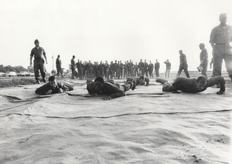 La formation que suivent, (que subissent) ces appelés se veut moderne. On utilise la vidéo avec par exemple un film sur l’hygiène dentaire où on apprend comment se brosser les dents. Pour le reste, rien de bien surprenant. On apprend à marcher au pas à ramper sur le sol. Et tous les exercices physiques traditionnels. Le maniement des armes est bien sûr un moment important, sans oublier l’utilisation de la baïonnette. Cette séquence est l’occasion d’un échange significatif. Ces armes ont-elles tué un homme¸ Demande-t-on ? Sont-elles appelées à le faire ? L’instructeur coupe court au possible débat éthique. A la guerre, ou on tue ou on est tué ? Face à un ennemi, pas le temps de réfléchir. Et la plus haute valeur, c’est de se sacrifier pour les autres, de risquer sa vie pour sauver celle d’un camarade.
