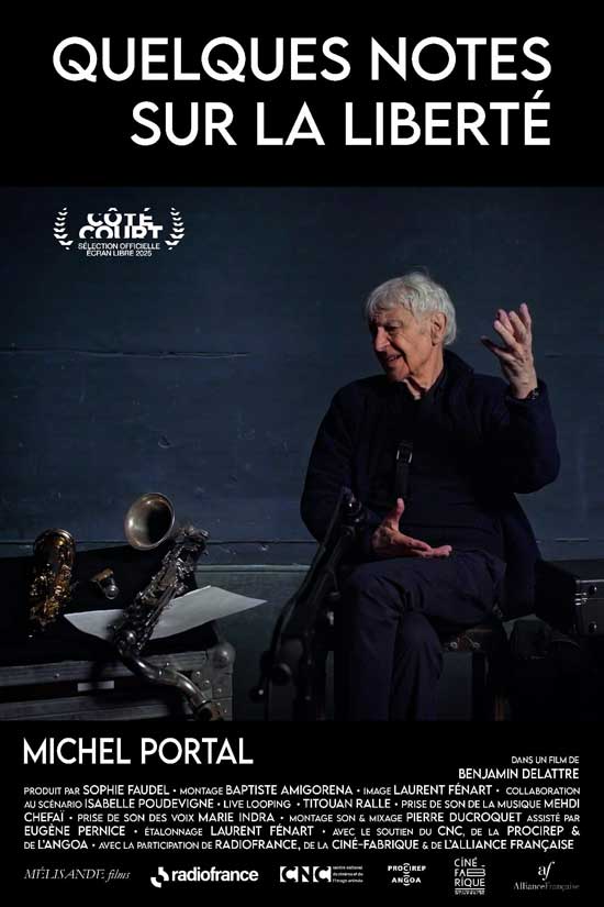 Quelques notes sur la liberté. Benjamin Delattre, 2025, 53 minutes. Un film sur la musique ? Sur la musique d’un musicien, Michel Portal. Seul à l’écran, ou presque. Dans le premier plan, il est en présence du réalisateur et de deux membres de l’équipe technique du film. Ensuite, le même cadrage le montre seul avec ses… Lire la suite Portal solo