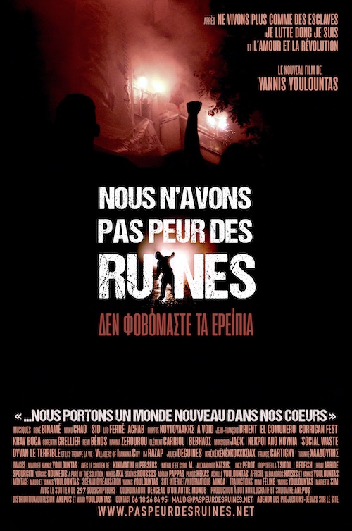 Nous n’avons pas peur des ruines. YannisYoulountas, France-Grèce, 2024, 80 minutes. Après Ne vivons pas comme des esclaves (2013), Je lutte donc je suis (2015) et L’amour et la révolution (2018), trois films aux titres évocateurs, voici Nous n’avons pas peur des ruines, un titre tout aussi significatif pour ce film militant, défendant un engagement… Lire la suite Activisme grec